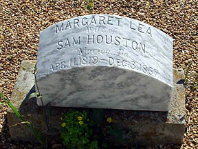 | Margaret Lea Houston wife of Sam Houston Lea-Houston Cemetery which stands on a raised mound at the corner of what is now Hwy 50 and Hwy 390. |